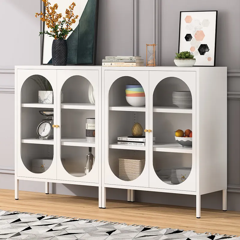 المظهر الجمالي: تتميز خزائن الأبواب الزجاجية المقواة بمظهر أنيق وعصري يكمل أنماط الديكور المختلفة، بما في ذلك المعاصرة أو البسيطة أو الصناعية. يمكنهم إضافة لمسة من الرقي إلى أي غرفة مع توفير حلول تخزين وعرض عملية.