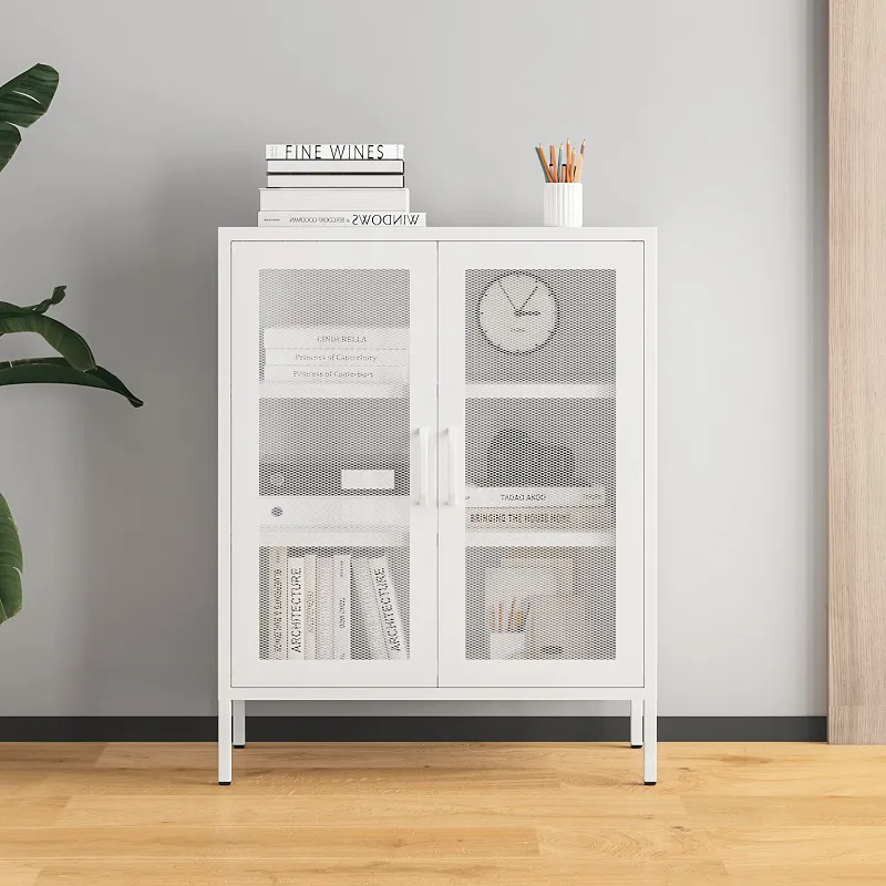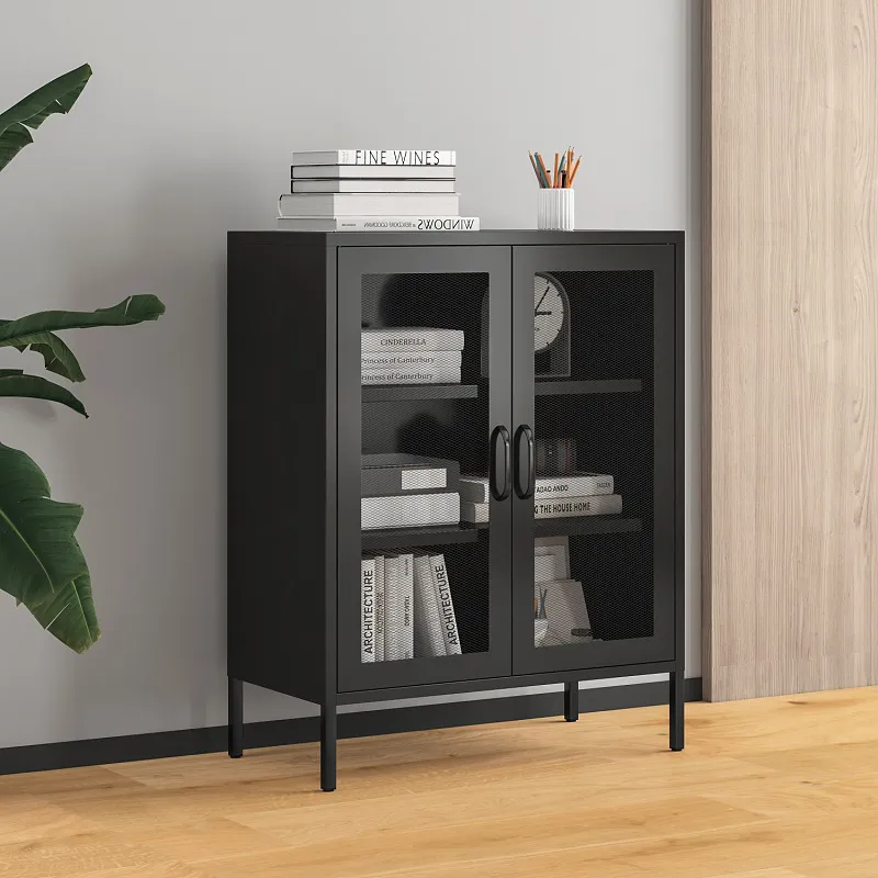 الوظيفة: توفر الألواح الجانبية ذات الأبواب الشبكية خيارات التخزين والعرض، مما يسمح لك بالحفاظ على العناصر منظمة مع عرض القطع الزخرفية أيضًا.