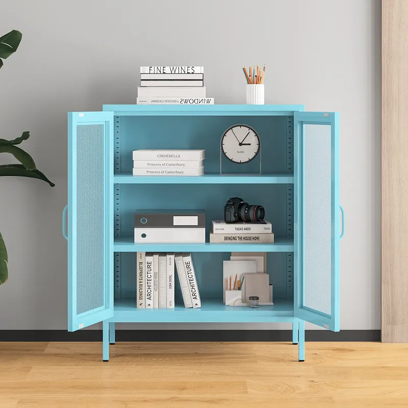 التهوية: التصميم المسامي للأبواب الحديدية يجعل هذه الخزائن مناسبة للاستخدام في المناطق ذات الرطوبة العالية أو مستويات الرطوبة، مثل الحمامات أو غرف الغسيل أو الأقبية. تساعد التهوية المناسبة على منع تلف العناصر المخزنة بسبب العفن والعفن والرطوبة.
