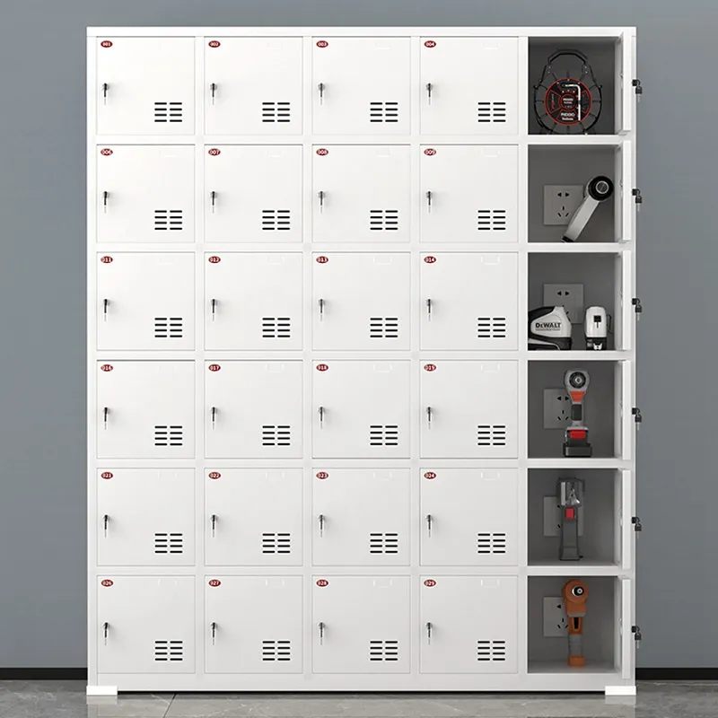 منافذ الشحن المتكاملة: تم تجهيز خزائن الشحن بمنافذ كهربائية مدمجة أو منافذ USB لتسهيل شحن الأدوات الكهربائية والأجهزة الإلكترونية. قد يتم توصيل هذه المنافذ مباشرة بالخزانة أو يتم تشغيلها بواسطة مصدر طاقة خارجي.