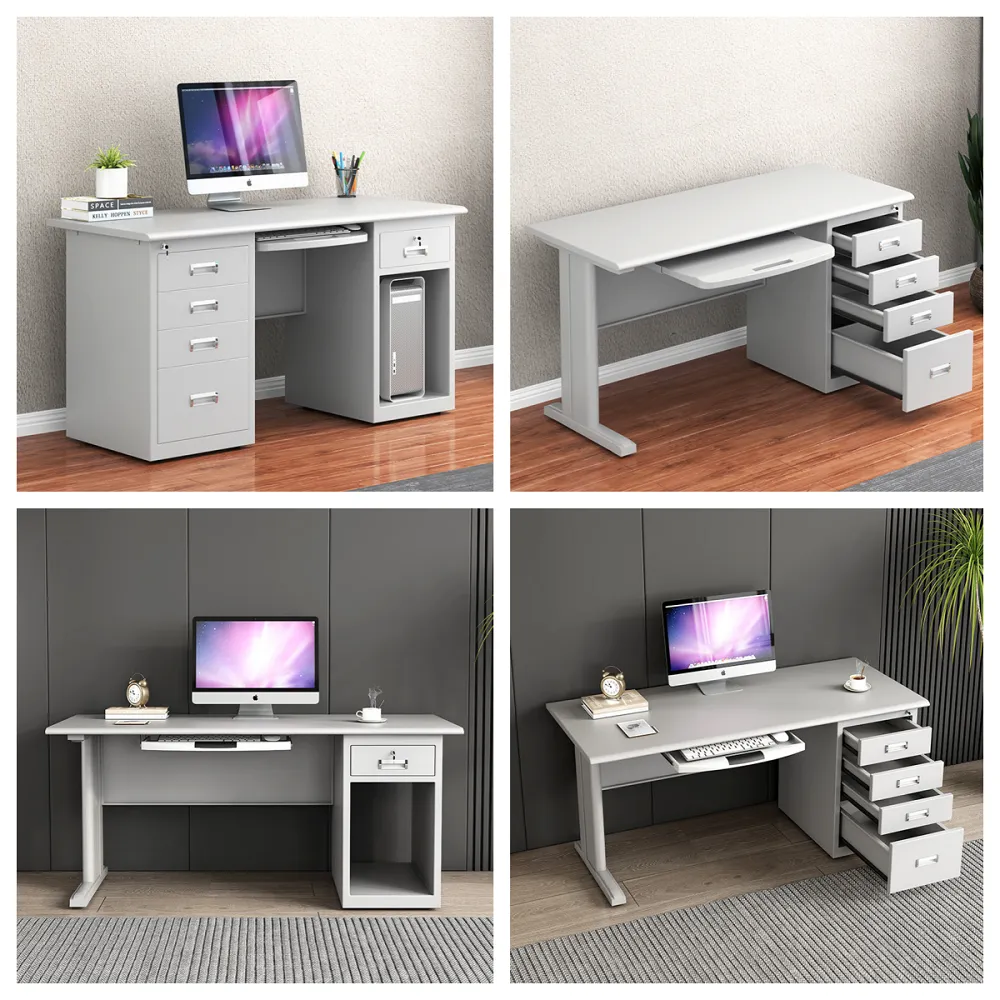 خيارات التخصيص: قد تأتي مكاتب المكاتب الفولاذية مع خيارات التخصيص لتناسب احتياجات المستخدمين المختلفين. يمكن أن يشمل ذلك إعدادات ارتفاع قابلة للتعديل، أو أدراج لوحة المفاتيح، أو أنظمة إدارة الكابلات المدمجة، أو ميزات تخزين إضافية مثل الأدراج أو الرفوف.
