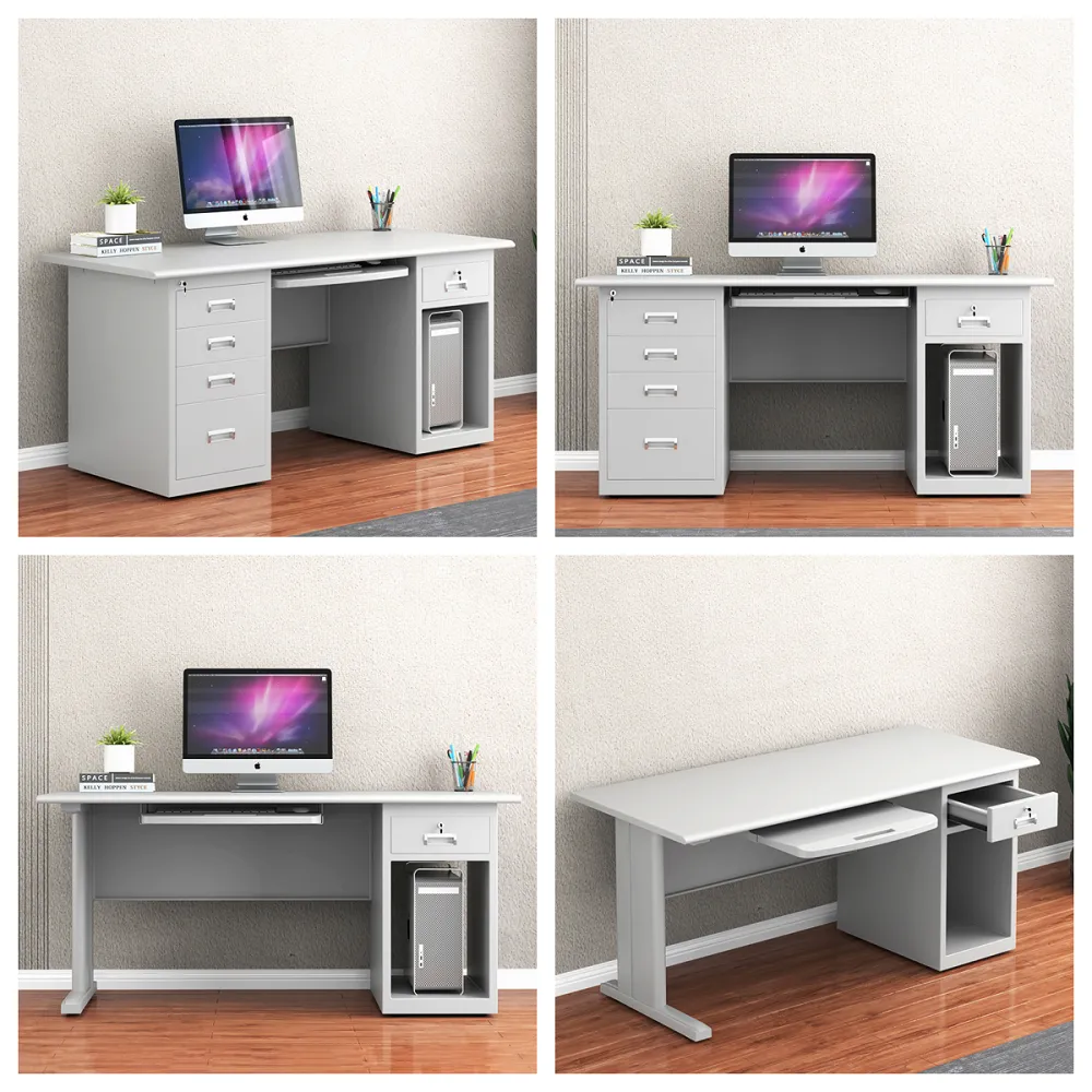 البناء الفولاذي: السمة الأساسية لمكتب المكتب الفولاذي هي بنائه باستخدام مواد فولاذية. يتم تصنيع الإطار والأرجل وأحيانًا سطح المكتب نفسه من الفولاذ، مما يوفر القوة والثبات لدعم الأحمال الثقيلة وتحمل الاستخدام اليومي في بيئة مكتبية مزدحمة.