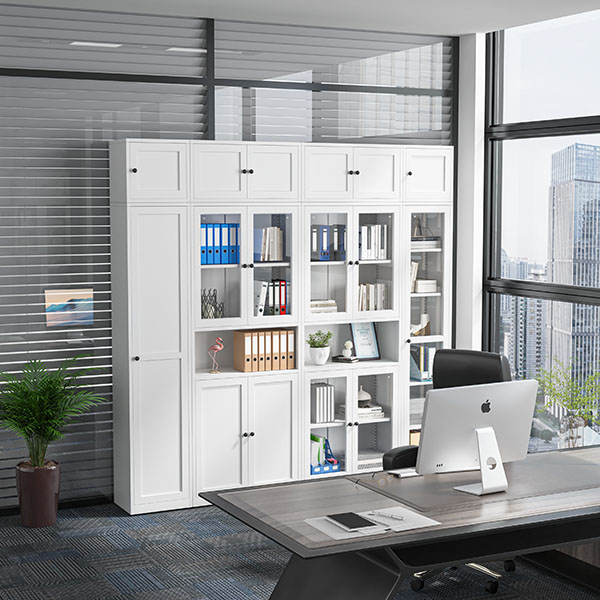 Office Organization: File cabinets with glass doors are commonly used in offices to store and organize important documents, files, records, and office supplies. The glass doors allow for easy visual access to files while maintaining a professional appearance.